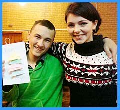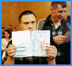 Ось і цього разу студенти завітали з цікавою розважальною програмою - танцями та піснями та навчили хлопчиків створювати новорічні листівки.