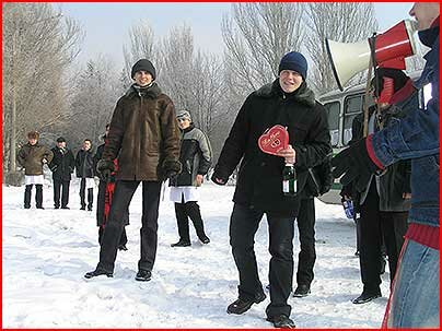 Поэтому-то веселым символом акции стал мистер VIZIT. В шуточной форме, с конкурсами, играми, забавными «однодневными бракосочетаниями» команда студенческого Сената ЗГИА с Андреем Чейлитко и Петром Дремухой во главе агитировала студентов ЗГМУ, ЗНТУ, ЗНУ, ЗИГМУ да и всю молодежь, которая встречалась по маршруту следования за будущее…