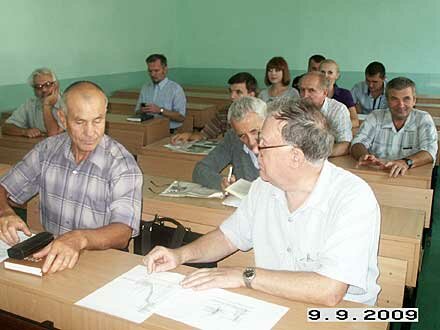 Відкрив семінар декан факультету Чепрасов О. І. Свої погляди на версії причин та можливого розвитку подій 17.08.09 висловили Радченко В. В., Самойленко Є. Г., Сивко Р. І, Чепрасов О. Ї., Чван В. М. та ін.. .. Цікавий фактичний матеріал був представлений Зубко Є. І. Досить продуктивні ідеї вібраційної природи проголошено проф. Шамровським О. Д. Активну участь у обговоренні взяли проф. Голубцов В. М., студенти, магістранти та аспіранти різних кафедр. Ніхто з присутніх не залишився байдужим до проблем, що обговорювалися. |