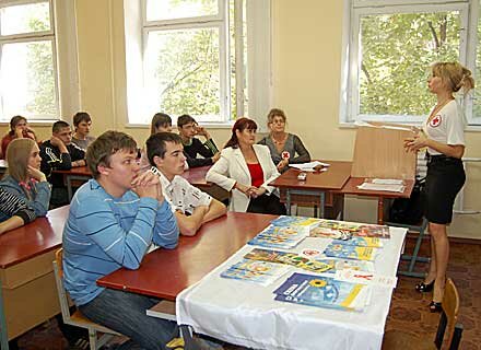 22 вересня відбулася зустріч студентів ЗДІА зі співробітниками міжрайонного Товариства Червоного Хреста (ТЧХ) Хортицького та Ленінського районів м.Запоріжжя. На зустрічі були присутні гості: Березовська Катерина Іванівна (головний спеціаліст з міжнародного гуманітарного права національного комітету товариства Червоного Хреста України (м. Київ), Чорна Валентина Андріївна (представник національного ТЧХ України м. Умань), Божок Надія Іванівна (заступник голови обласної організації ТЧХУ м. Запоріжжя), Басова Валентина Степанівна (голова Хортицького та Ленінського міжрайонного ТЧХ). Грицун Світлана Анатоліївна спеціаліст ТЧХ прочитала традиційну лекцію для студентів першого курсу механіко-технологічного факультету з історії Червоного Хреста та міжнародного гуманітарного права. Були розглянуті основні напряму роботи Товариства Червоного Хреста України: