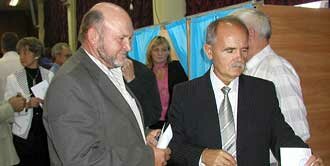- доктор фізико-математичних наук, професор, Заслужений працівник освіти України Володимир Іванович Пожуєв і доктор технічних та економічних наук Василь Михайлович Порохня (Класичний приватний університет). Переконливу перемогу в голосуванні отримав Володимир Іванович Пожуєв. А це - 95% голосів від списочного складу делегатів конференції, а лише 1,7 % залишилося конкурентові. Володимир Іванович Пожуєв присвятив 30 років роботі в ЗДІА - й це однозначно свідчило на його користь. До того ж 5 років у керма академії переконали колектив у ефективності обраного курсу. Примірник Програми розвитку ВНЗ на 2008-2013 роки знаходився в бібліотеці ЗДІА й користувався чималим попитом. Тому немає нічого дивного, що за підсумками голосування ректором на черговий п\'ятирічний термін був переобраний саме В. І. Пожуєв. - Якщо поглянути на програму розвитку ВНЗ, - вважає Володимир Іванович, - то можна відзначити, що практично всі її пункти починаються словом «продовжити». Академія перебуває на тому етапі розвитку, коли змінювати команду не має сенсу. Тим більше, що програма створювалася колегіально, з врахуванням побажань і нагальних потреб усіх кафедр і підрозділів ЗДІА. Мій основний і єдиний принцип як керівника - в академії мають працювати професіонали. А це життєво необхідний чинник, оскільки в період 2008-2009 років кафедри ВНЗ пройдуть пере акредитацію. Я вдячний колективу за висловлену мені довіру. Ми будемо продовжувати працювати єдиною командою - і в цьому наша сила, наше майбутнє.